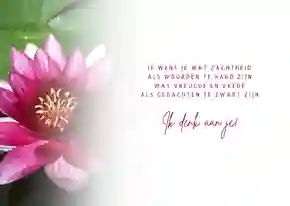 Voor iemand die een zware tijd heeft, kan het een mooi gebaar zijn als er een troostend kaartje op de deurmat valt. Een sterkte kaart met bloemen is dan een liefdevolle manier om je medeleven te tonen. We hebben verschillende soorten bloemen sterkte kaarten. Van vrolijk tot sereen en van kleurrijk tot rustig. Wie steek jij een hart onder de riem?