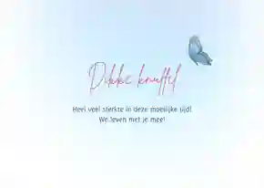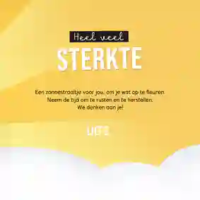 Op sommige dagen kun je een dikke knuffel goed gebruiken. Misschien ben je al een tijdje ziek, heb je een dierbare verloren of zit je gewoon niet zo lekker in je vel. De woorden “Ik denk aan je” kunnen dan ontzettend fijn zijn. Verstuur daarom een dikke knuffel via Kaartje2go. Kies een sterkte knuffel kaart uit de galerij en geef hier vervolgens je eigen draai aan in onze online kaartmaker. Voeg bijvoorbeeld een lieve foto toe of plaats een passend figuur op de kaart. Een hartje, bloem of de woorden “Dikke knuffel voor jou” zijn goede opties.