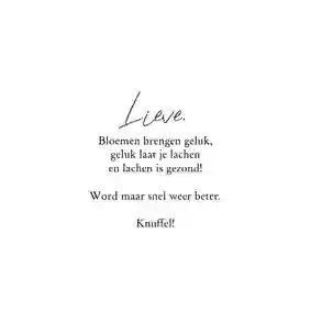 Voelt alleen een sterkte knuffel sturen niet voldoende? Voeg dan een sterkte cadeau aan je knuffelkaart toe. Daar beurt je familielid, vriend(in) of collega vast een beetje van op. Geef bijvoorbeeld lekkere thee cadeau, voor een ontspannend momentje om weer even op adem te komen. Bloemen of chocolade passen ook goed bij een sterkte knuffel kaart. Wil je iemand écht sterkte wensen met een knuffel? Voeg dan een knuffelbeer aan je bestelling toe.