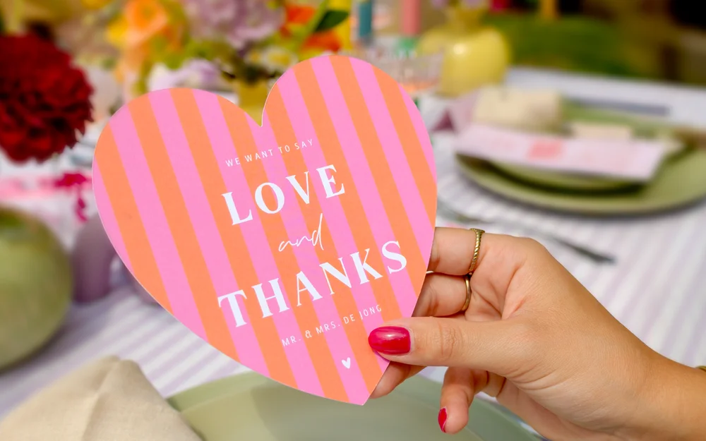Nagenieten is het leukste wat er is! Bedank jullie gasten met een persoonlijke kaart en deel samen de mooiste herinneringen aan jullie dag.