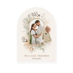 Val extra op tussen alle andere post met een unieke vorm. Van hippe cirkels tot stijlvolle boogkaarten; zo geef je jullie moment een heel eigen karakter.