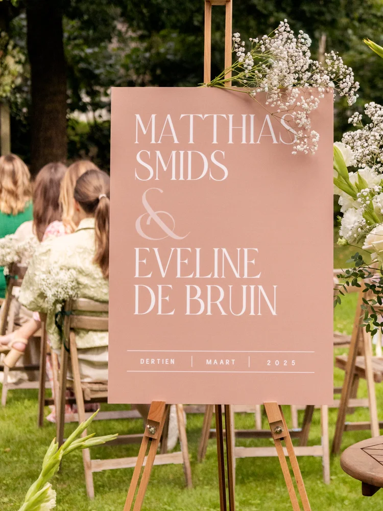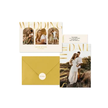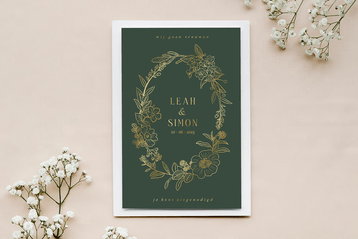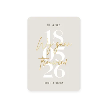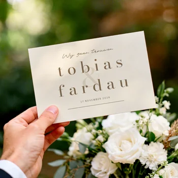 Geef jullie kaart een luxe uitstraling met glimmend goud, zilver of roségoud. Een schitterende manier om jullie namen echt te laten stralen.