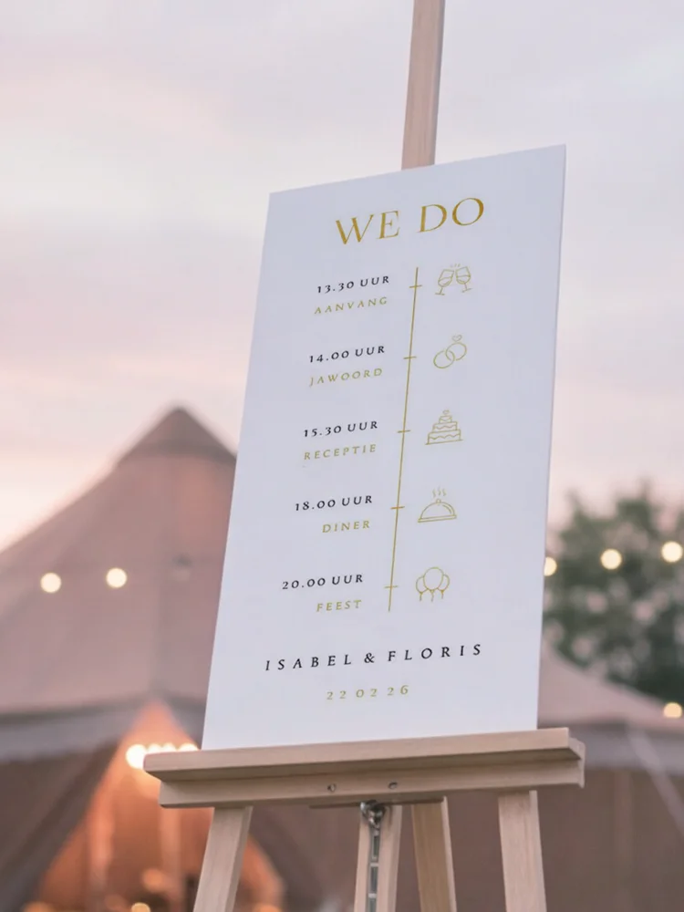 Houd je kaartje rustig en overzichtelijk met een extra inlegvel voor alle praktische informatie. Zo blijft de focus op jullie mooie ontwerp!