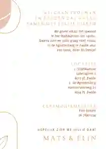 Hebben jullie een hippe trouwkaart gevonden? Dan is het tijd om de kaart te bewerken. In de kaartmaker heb je alle vrijheid om het kaartje helemaal naar wens te maken. Zo kun je foto’s, figuren en kaders toevoegen. Pas ook het lettertype en kleurenpalet aan om de trouwkaarten een hippe touch te geven. We leggen stap voor stap uit hoe het werkt: