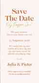 Fotokaart uitnodiging huwelijk met oranje boog en goud