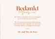 Moderne trouwkaart met grote foto en stijlvolle boogvorm in roze perzik tint en klein goud hartje. De details zijn in gouden foliedruk.