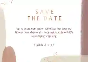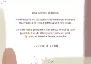 Kaartje voor geregistreerd partnerschap, met naturel kleuren, waterverf en koperkleurige spettertjes. Kan met of zonder folie besteld worden.