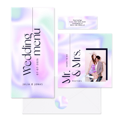 Menukaart holografisch trouwdag modern grafisch