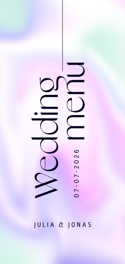 Een super moderne menukaart met grafische opmaak en holografische achtergrond.