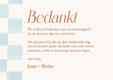 Een mooie hippe menukaart voor jullie bruiloft. Met geblokte achtergrond in blauw en wit en typografie in echte koperfolie