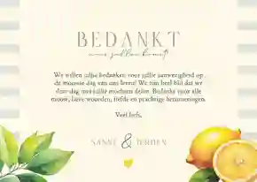 Zomerse trouwkaart met citroenen, streepjes en takjes
