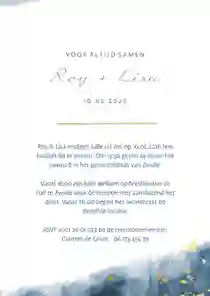 Stijlvolle trouwset met een donkerblauwe waterverf achtergrond gecombineerd met goudlook spetters en klassieke typografie.
