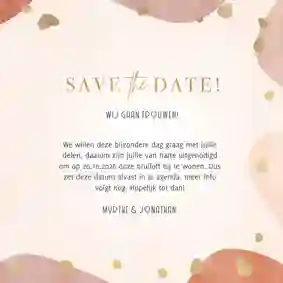 Een hippe trouwset met golvende vormen in natuurlijke kleuren, goudlook spetters en typografie.