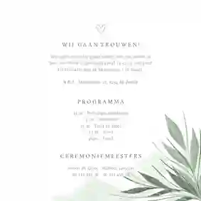 Stijlvolle trouwkaarten set met jungle bladeren, waterverf en strakke typografie.