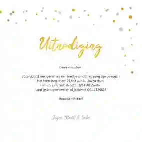 Er zijn zoveel redenen om een feestje te geven. Steeds meer feestvarkens organiseren bijvoorbeeld een babyshower, housewarming of pensioenfeest. Net als een kraamfeest en familiedag. Allemaal gelegenheden waarbij het leuk is om een foto uitnodiging te maken. Onze collectie is gevuld met honderden leuke foto uitnodigingen in allerlei thema’s en stijlen. Je ziet vooral veel hippe, moderne en gouden uitnodigingen in de kaartgalerij staan. Niet zo’n fan van deze stijlen? Filter dan eens op figuren zoals bloemen, confetti en slingers.