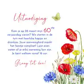 Een zomerse verjaardag buiten vraagt om een frisse en vrolijke uitnodiging. Denk aan lichte kleuren, bloemen, groen en een ontspannen sfeer.