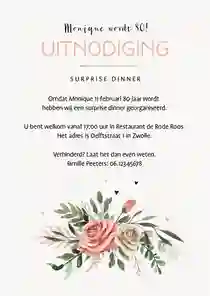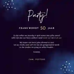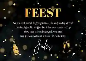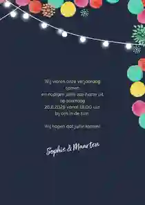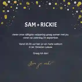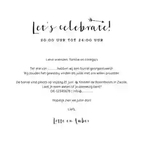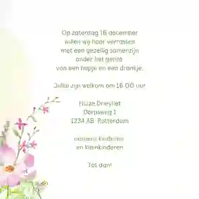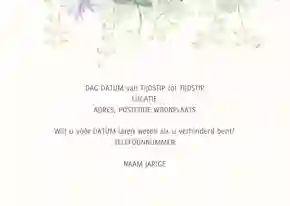 Niet alle uitnodigingen hebben een foto nodig. Veel ontwerpen zijn namelijk al leuk genoeg van zichzelf. Ook een uitnodiging zonder foto maken? Kies een ontwerp uit onze collectie en pas deze naar wens aan met onze kaartmaker.