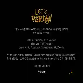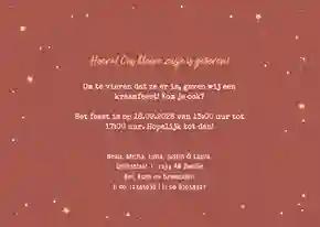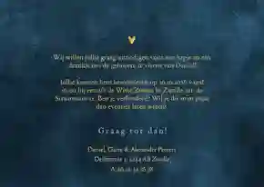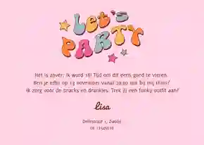 Niet alle uitnodigingen hebben een foto nodig. Veel ontwerpen zijn namelijk al leuk genoeg van zichzelf. Ook een uitnodiging zonder foto maken? Kies een ontwerp uit onze collectie en pas deze naar wens aan met onze kaartmaker.