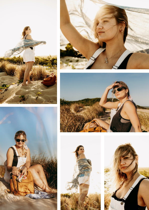 Maak je eigen vakantiekaart met 6 mooie persoonlijke foto's. Zo kan je je dierbaren laten zien hoe je geniet!