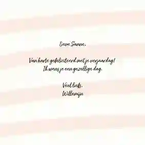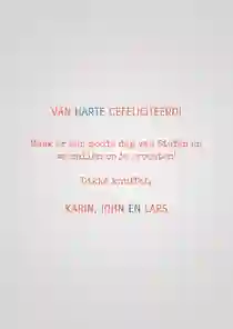Een verjaardagskaart maken, omdat een dierbare 30 jaar wordt, kan bij Kaartje2go makkelijk en snel. Kies een kaart uit de collectie ‘Kaart 30 jaar’ of begin met een blanco kaart. In onze kaartmaker kun je trouwens ook zelf een foto uploaden via je computer of social media kanalen. Zoek dus snel een feestelijke foto uit en bewerk de kaart door allerlei leuke figuren, kaders en teksten toe te voegen. Schrijf bijvoorbeeld een grappige felicitatie of tekst over 30 jaar worden op de verjaardagskaart.