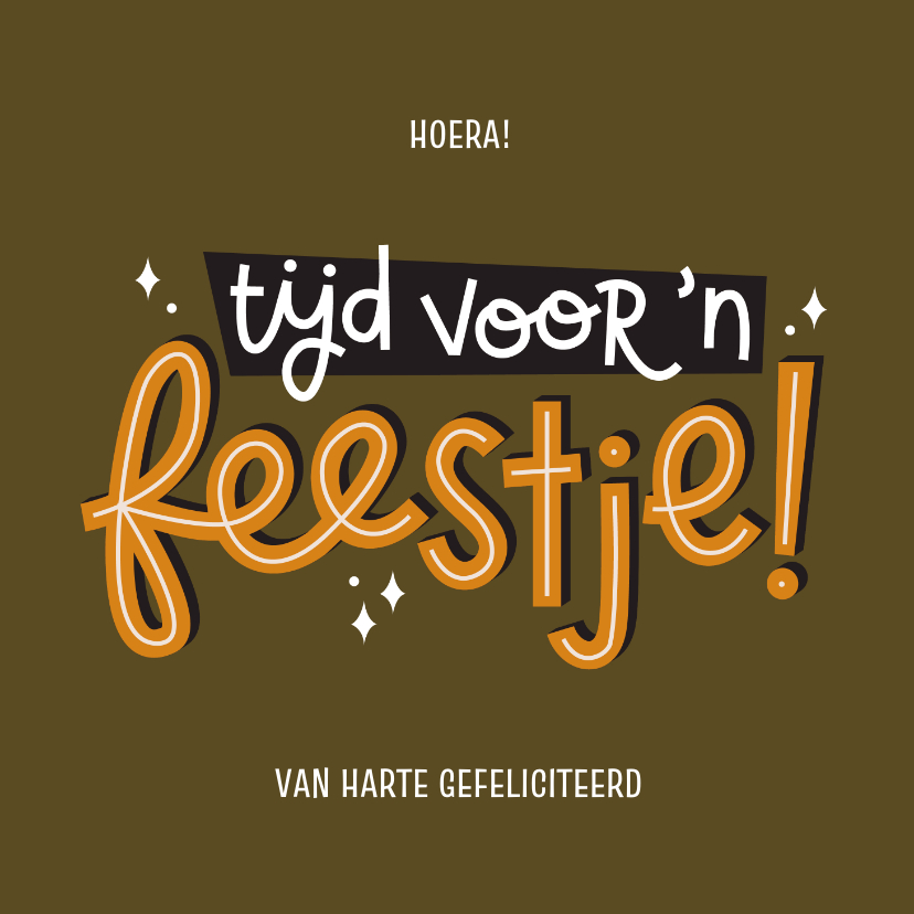 Tijd voor een feestje?! Stuur ze dit typografische kaartje in stoere kleuren naar de jarige job!