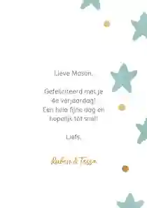 Verjaardagskaarten voor kinderen verschillen erg van verjaardagskaarten voor volwassenen. Je wil immers als kind niet zo’n serieus grotenmensen kaartje ontvangen. Dat is niet leuk. Daarom hebben we speciaal hiervoor een selectie verjaardagskaarten voor kinderen ontworpen met leuke kaarten voor zowel jongens als meisjes. In deze categorie vind je een aantal grappige, hippe en stoere kaartjes, waarvan we weten dat kinderen ze leuk vinden! Of ze nou 2, 3 of 8 jaar worden bij Kaartje2go vind je zeker een passende kaart. Met een leuke tekst voor de verjaardag maak je het helemaal af.