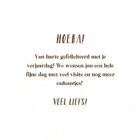 Niet gevonden wat je zocht? Kijk dan eens tussen onze verjaardagskaarten met dieren. Hier vind je de leukste kaarten met een dino, hond of paard.