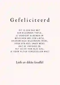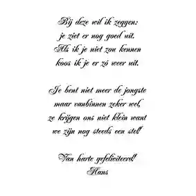 Wil je je opa, oma, buurman of vriendin feliciteren met zijn of haar verjaardag? Een senior verjaardagskaart is daar dé manier voor. Want juist op een hogere leeftijd wordt dat gebaar extra gewaardeerd. De perfecte kaart voor de verjaardag van een oudere man of vrouw is trouwens zo gemaakt bij Kaartje2go. Kies in het filtermenu het geslacht en selecteer stijlen en thema’s die bij de jarige passen. Ga bijvoorbeeld voor de stijlen vintage, grappig of modern. Of juist een thema, zoals christelijk of dieren. Wil je een specifieke leeftijd op de verjaardagskaart voor een oudere vrouw of man vermelden? Selecteer dan in het menu de optie ‘leeftijd aanpasbaar’. Zet tot slot een leuke tekst op de kaart en voeg eventueel een verjaardagscadeau aan je bestelling toe. Zo gemakkelijk kan het verrassen van een oudere zijn!