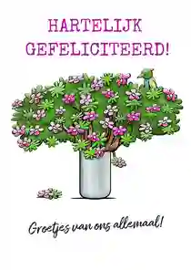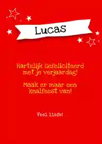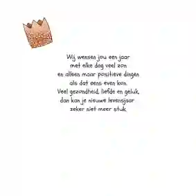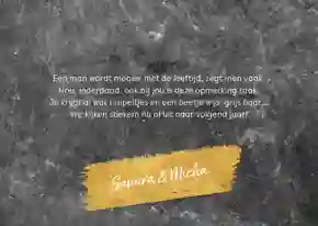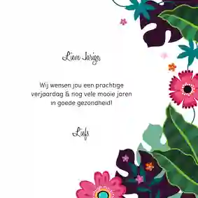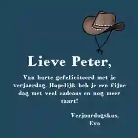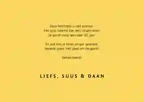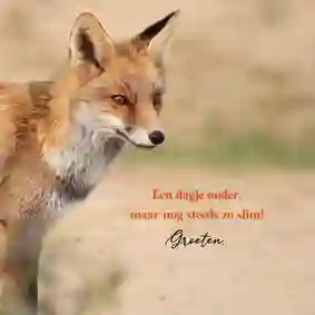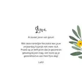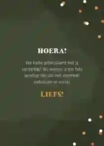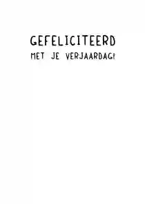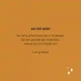 Heb je een gave verjaardagskaart voor de jarige uitgekozen? In de kaartmaker kun je er gemakkelijk je eigen draai aangeven. Kies bijvoorbeeld een ander stoer lettertype (tip: ‘Chunky’, ‘Groovy’ of in graffitistijl), voeg een toffe foto toe en versier de kaart met houtlook, zwarte of gouden figuren. Ook de standaardtekst op de voor- en binnenkant van de stoere verjaardagskaart pas je in een paar klikken aan. Verander ‘Proost’ bijvoorbeeld in ‘Cheers’ en ‘Gefeliciteerd’ in ‘Happy Birthday’ of ‘Happy Bday’. Er zelf nog een felicitatie bij in zetten? Bekijk onze artikel met verjaardagswensen voor inspiratie.