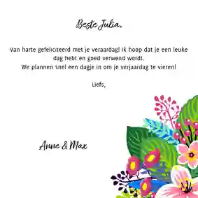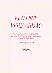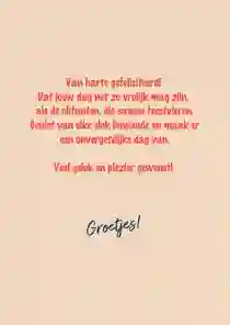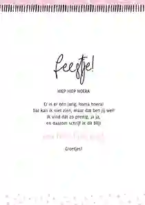 Verzend je de kaart met Kaartje2go dan is het niet alleen leuk om een kaart te krijgen, maar ook om een verjaardagskaart voor je dochter te maken. Je maakt een kaart online, voert het adres van je dochter in en wij zorgen ervoor dat de kaart in haar brievenbus terecht komt. Werkt dat echt zo simpel? Ja echt! Je begint met het kiezen van een ontwerp. We hebben veel verschillende ontwerpen. Er zit zeker wat voor jou en jouw dochter tussen. Je brengt passende ontwerpen naar voren door een stijl in het filtermenu te kiezen. Zo kun je kiezen voor een stijlvolle verjaardagskaart, klassiek of juist modern. Of past een vintage kaart beter bij deze belangrijke vrouw in je leven? Na het kiezen van een ontwerp kun je de kaart aanpassen. Dat doe je met onze kaartmaker. Je kunt het heel simpel houden door alleen een tekst op de kaart te schrijven. Een ‘gefeliciteerd met je verjaardag’ kan al genoeg zijn. Je kunt ook een langere tekst schrijven. Bijvoorbeeld een verhaaltje waarin je terugkijkt op het afgelopen jaar. Of een mooie verjaardagswens voor het jaar dat komen gaat.