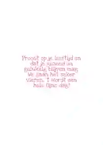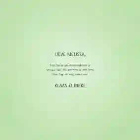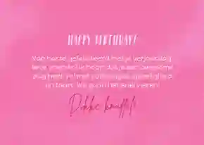 Je hebt een mooie kaart gemaakt. Nu is de kaart klaar om verzonden te worden. Bestel je voor de eerste keer een kaartje bij ons? Dan krijg je de kaart van ons cadeau. Voor de verzending heb je natuurlijk het adres van je dochter nodig. Vergeet het adres niet op te slaan in het adresboek van je account, zodat je het de volgende keer kunt selecteren. Kies een verzenddatum en wij verzorgen de rest. Wij geven de kaart aan PostNL. In 95% van de gevallen heeft je dochter de kaart de volgende dag in huis.
