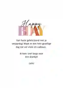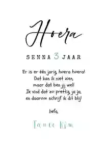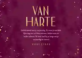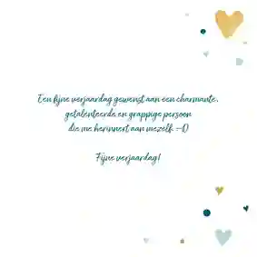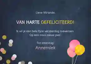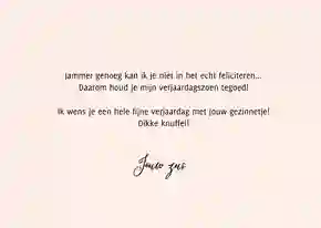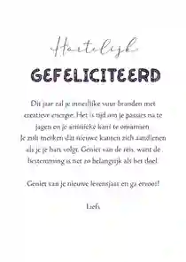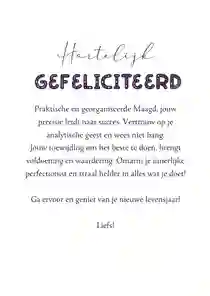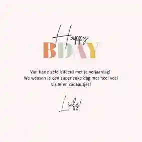 Verzend je de kaart met Kaartje2go dan is het niet alleen leuk om een kaart te krijgen, maar ook om een verjaardagskaart voor je dochter te maken. Je maakt een kaart online, voert het adres van je dochter in en wij zorgen ervoor dat de kaart in haar brievenbus terecht komt. Werkt dat echt zo simpel? Ja echt! Je begint met het kiezen van een ontwerp. We hebben veel verschillende ontwerpen. Er zit zeker wat voor jou en jouw dochter tussen. Je brengt passende ontwerpen naar voren door een stijl in het filtermenu te kiezen. Zo kun je kiezen voor een stijlvolle verjaardagskaart, klassiek of juist modern. Of past een vintage kaart beter bij deze belangrijke vrouw in je leven? Na het kiezen van een ontwerp kun je de kaart aanpassen. Dat doe je met onze kaartmaker. Je kunt het heel simpel houden door alleen een tekst op de kaart te schrijven. Een ‘gefeliciteerd met je verjaardag’ kan al genoeg zijn. Je kunt ook een langere tekst schrijven. Bijvoorbeeld een verhaaltje waarin je terugkijkt op het afgelopen jaar. Of een mooie verjaardagswens voor het jaar dat komen gaat.