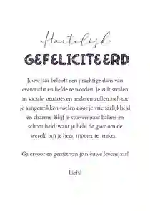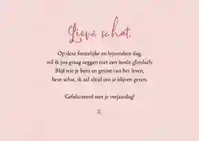 Gefeliciteerd, je dochter is jarig! Het is alsof ze gisteren nog in jouw armen lag. Dat de tijd zo snel gaat, is een goede reden om haar deze verjaardag te feliciteren. Met een mooie wens voor dit nieuwe levensjaar. Want als je van iemand houdt, kun je dat niet genoeg delen. Je dochter feliciteren doe je natuurlijk met een verjaardagskaart van Kaartje2go.