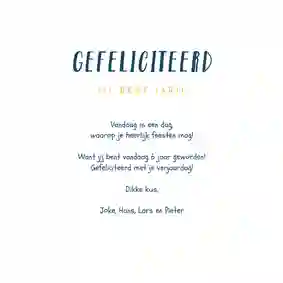 Verzend je de kaart met Kaartje2go dan is het niet alleen leuk om een kaart te krijgen, maar ook om een verjaardagskaart voor je dochter te maken. Je maakt een kaart online, voert het adres van je dochter in en wij zorgen ervoor dat de kaart in haar brievenbus terecht komt. Werkt dat echt zo simpel? Ja echt! Je begint met het kiezen van een ontwerp. We hebben veel verschillende ontwerpen. Er zit zeker wat voor jou en jouw dochter tussen. Je brengt passende ontwerpen naar voren door een stijl in het filtermenu te kiezen. Zo kun je kiezen voor een stijlvolle verjaardagskaart, klassiek of juist modern. Of past een vintage kaart beter bij deze belangrijke vrouw in je leven? Na het kiezen van een ontwerp kun je de kaart aanpassen. Dat doe je met onze kaartmaker. Je kunt het heel simpel houden door alleen een tekst op de kaart te schrijven. Een ‘gefeliciteerd met je verjaardag’ kan al genoeg zijn. Je kunt ook een langere tekst schrijven. Bijvoorbeeld een verhaaltje waarin je terugkijkt op het afgelopen jaar. Of een mooie verjaardagswens voor het jaar dat komen gaat.