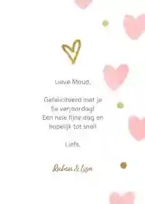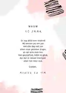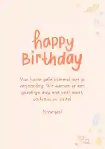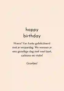 Verzend je de kaart met Kaartje2go dan is het niet alleen leuk om een kaart te krijgen, maar ook om een verjaardagskaart voor je dochter te maken. Je maakt een kaart online, voert het adres van je dochter in en wij zorgen ervoor dat de kaart in haar brievenbus terecht komt. Werkt dat echt zo simpel? Ja echt! Je begint met het kiezen van een ontwerp. We hebben veel verschillende ontwerpen. Er zit zeker wat voor jou en jouw dochter tussen. Je brengt passende ontwerpen naar voren door een stijl in het filtermenu te kiezen. Zo kun je kiezen voor een stijlvolle verjaardagskaart, klassiek of juist modern. Of past een vintage kaart beter bij deze belangrijke vrouw in je leven? Na het kiezen van een ontwerp kun je de kaart aanpassen. Dat doe je met onze kaartmaker. Je kunt het heel simpel houden door alleen een tekst op de kaart te schrijven. Een ‘gefeliciteerd met je verjaardag’ kan al genoeg zijn. Je kunt ook een langere tekst schrijven. Bijvoorbeeld een verhaaltje waarin je terugkijkt op het afgelopen jaar. Of een mooie verjaardagswens voor het jaar dat komen gaat.