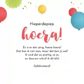 Wil je jouw dochter verrassen met een gepersonaliseerde verjaardagskaart? Ook dat kan! De kaartmaker geeft je toegang tot allerlei leuke figuren en kaders. Hiermee geef jij je eigen draai aan de kaart. Het werkt heel simpel: je selecteert een figuur of kader, kiest de grootte die je voor ogen hebt en sleept het naar de juiste plek op de kaart. Dat kan voorop of aan de binnenzijde van de kaart. Ook kun je eigen foto’s en plaatjes toevoegen aan de kaart. Denk aan foto’s van je dochter toen ze klein was of een foto van jou/jullie met haar. Zoals je leest, geeft de kaartmaker je de mogelijkheid om er een mooie eigen verjaardagskaart van te maken!