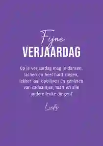 Een telefoontje, appje of mailtje.. er zijn genoeg manieren om je dochter te feliciteren. Maar zeg nou zelf, er is niks leuker dan een verjaardagskaart. Het jarige gevoel dat je dochter krijgt als ze op haar verjaardag naar de deurmat loopt en daar een kaart ziet liggen. Nieuwsgierig bekijkt ze de kaart. Ze ziet een leuk ontwerp, een mooie tekst en een lieve afzender: haar ouder(s). Wat een verjaardagskaart voor je dochter dus zo leuk maakt, is dat het écht een verrassing is. Het geeft haar echt een jarig gevoel en het zet haar in het zonnetje. De kaart kan ze nog heel lang bewaren, om op een later moment erbij te pakken en terug te denken aan de fijne verjaardag.