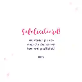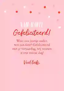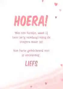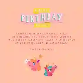 Gefeliciteerd, je dochter is jarig! Het is alsof ze gisteren nog in jouw armen lag. Dat de tijd zo snel gaat, is een goede reden om haar deze verjaardag te feliciteren. Met een mooie wens voor dit nieuwe levensjaar. Want als je van iemand houdt, kun je dat niet genoeg delen. Je dochter feliciteren doe je natuurlijk met een verjaardagskaart van Kaartje2go.