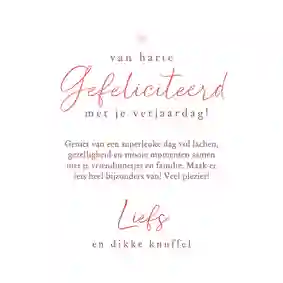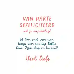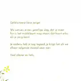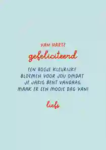 Tip: Op elke verjaardagskaart vind je een tekst voorbeeld. Pas ‘m eenvoudig aan naar jouw persoonlijke situatie en klaar is je kaartje!