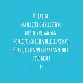 Tip: Op elke verjaardagskaart vind je een tekst voorbeeld. Pas ‘m eenvoudig aan naar jouw persoonlijke situatie en klaar is je kaartje!