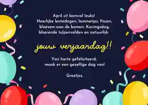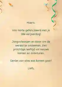 Tip: Op elke verjaardagskaart vind je een tekst voorbeeld. Pas ‘m eenvoudig aan naar jouw persoonlijke situatie en klaar is je kaartje!