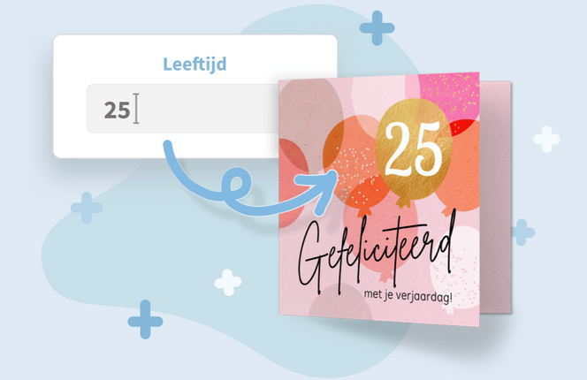 In één klik zien hoe de leeftijd van het feestvarken op de verjaardagskaart komt te staan? Vul de leeftijd in en zie meteen op welke kaart hij er het meest uit springt.