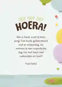 Tip: Op elke verjaardagskaart vind je een tekst voorbeeld. Pas ‘m eenvoudig aan naar jouw persoonlijke situatie en klaar is je kaartje!