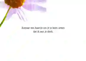 In onze galerij vind je verschillende bloemen kaarten zonder tekst. Een neutrale bloemen kaart is handig voor als je een specifieke boodschap wilt schrijven. Zoek de mooiste uit en verras je dierbare of bekende met een bloemetje van papier. In onze kaartmaker kun je trouwens ook heel makkelijk bestaande tekst weghalen, zo heb je alsnog een leuke bloemenkaart zonder tekst.