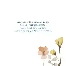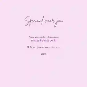 🌸 Tip: Met deze leuke teksten maak je je kaartje met bloemen helemaal af. Verstuur bijvoorbeeld ‘je bent de b(l)om’ naar je lieve zus!