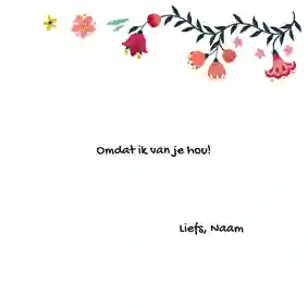 In onze galerij vind je verschillende bloemen kaarten zonder tekst. Een neutrale bloemen kaart is handig voor als je een specifieke boodschap wilt schrijven. Zoek de mooiste uit en verras je dierbare of bekende met een bloemetje van papier. In onze kaartmaker kun je trouwens ook heel makkelijk bestaande tekst weghalen, zo heb je alsnog een leuke bloemenkaart zonder tekst.