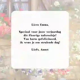 Heb je je favoriete bloemenkaart gevonden? Dan kun je hem heel makkelijk een eigen draai geven in onze handige kaartmaker. Voeg bijvoorbeeld een leuke foto toe of fleur je bloemenkaart op met mooie figuren en kaders. Wist je bijvoorbeeld dat je in onze kaartmaker uit meer dan 200 bloemenfiguren kun kiezen? En met een mooie persoonlijke tekst wordt je wenskaart nog leuker. Zo maak je eenvoudig en snel een bloemen kaart die perfect past bij je beste vriendin, opa of buurvrouw.