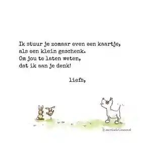 Benieuwd welke hondenkaarten we nog meer hebben? Lang speuren is niet nodig; door onze zoekbalk te gebruiken heb je zo een leuke kaart met een hond gevonden. Een speciale reden om een hondenkaart te sturen is niet nodig; tussen onze wenskaarten zitten ook ontwerpen om ‘zomaar’ te sturen. Daarnaast hebben onze designers ook beterschapskaarten met een hond gemaakt en speciale kaarten om dierbaren sterkte toe te wensen als hun geliefde huisdier overleden is.