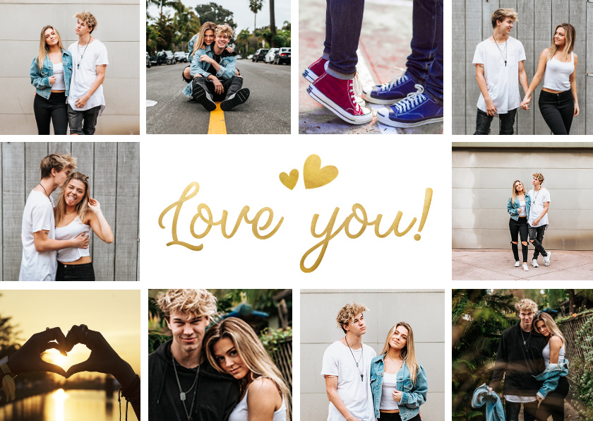 Stuur je liefde via een kaartje naar iemand toe als je iemand even niet kan zien in het echt. Leuke fotocollage kaart met ruimte voor 10 eigen foto's.