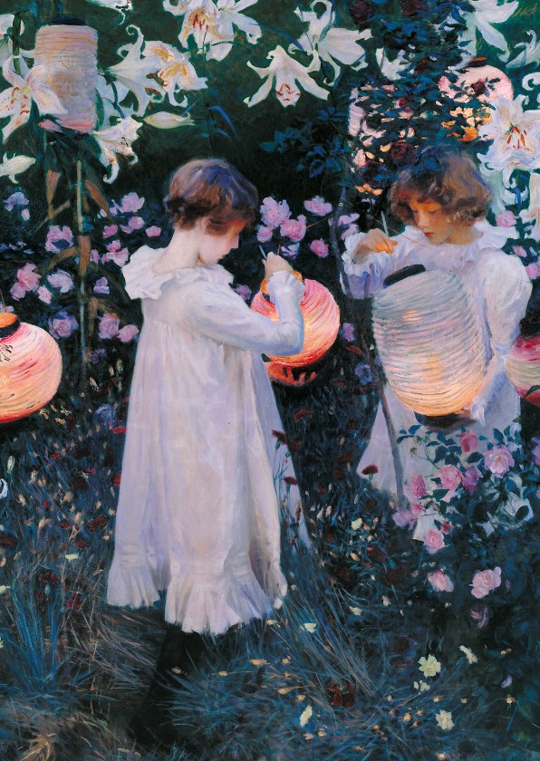 In het schemer steken de kinderen hun lampion aan. Wat een sprookjesachtige sfeer! Een prachtig schilderij van de Singer Sargent.